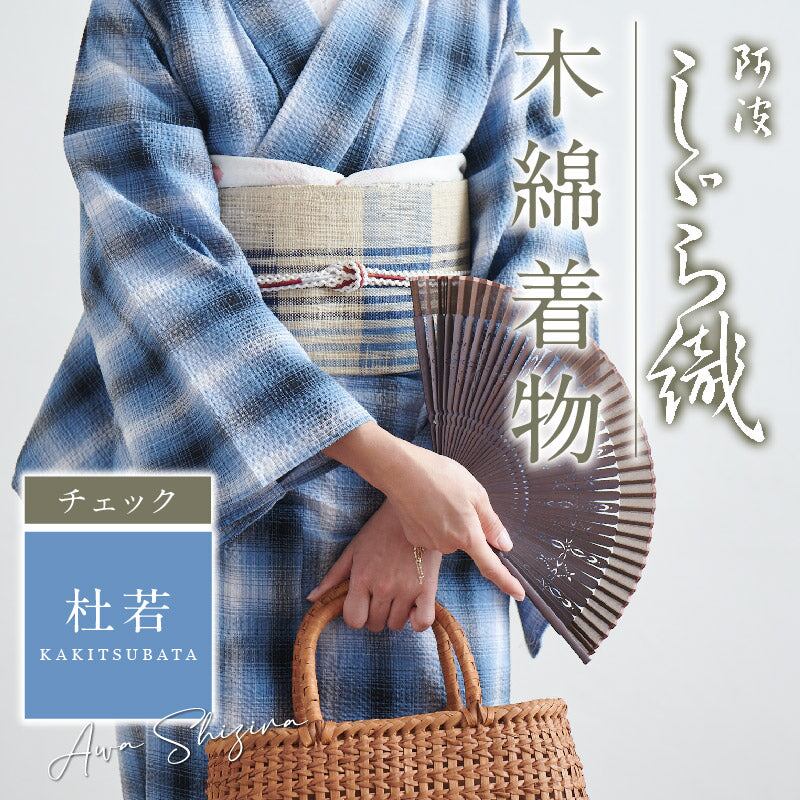 どなたでもピッタリサイズでしじら織が着られる。グラデーションカラーのチェック模様で、大人かわいく。気軽なふだん着物なのにきちんと感があり、